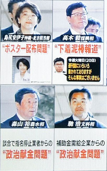 東京新聞特報部。新大臣スキャンダル 政権のレベル露呈。