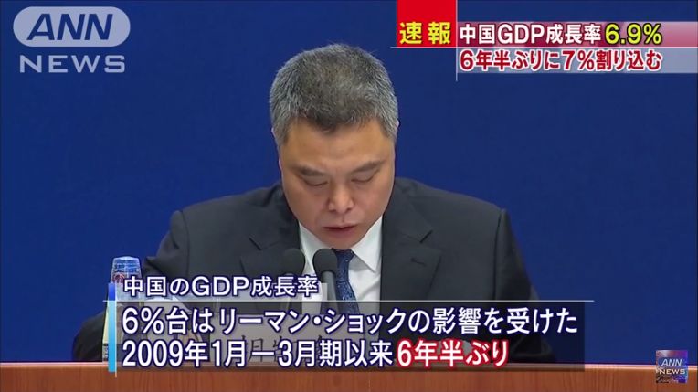 中国GDP6.9% 6年半ぶりの7%割れ 減速傾向続く(15/10/19)