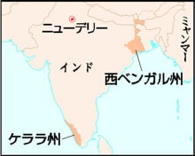 【ニューデリー=豊田栄光】インドで十一日、四州・一連邦直轄地の議会選挙(小選挙区制)の開票が行われました。ケララ州では「左翼民主戦線」が九十八議席(定数百四十)を獲得、五年前の選挙で失った州政権を奪還しました。東部の西ベンガル州では、一九七七年以降州政権を担ってきた「左翼戦線」が定数二百九十四中、二百三十五議席を得て圧勝しました。