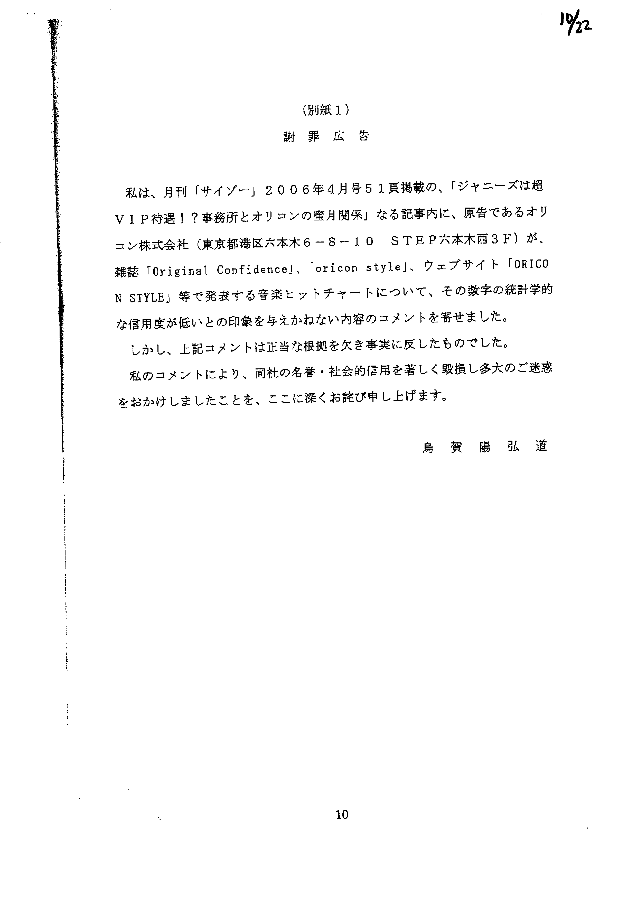 UGAYA Journal.:■「オリコン」が烏賀陽個人を被告に5000万円の損害賠償訴訟■