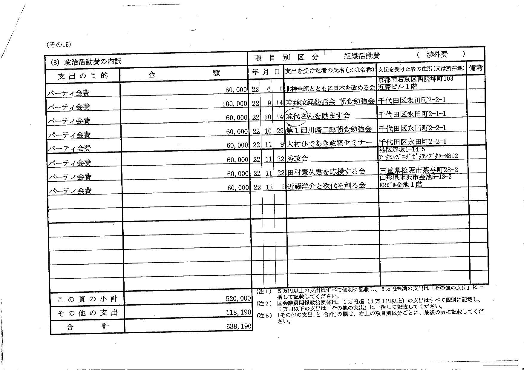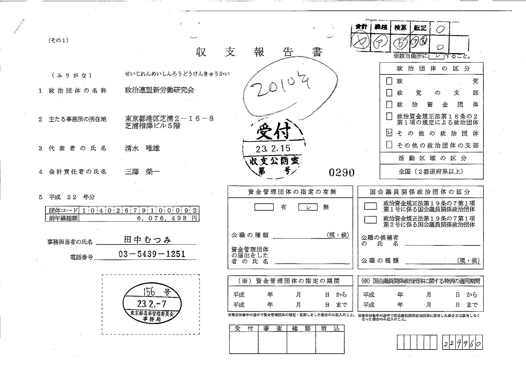 これが「政治連盟新労働研究会」の2010年分の政治資金収支報告書の写しだ(画像@)。「パーティー会費」の支払い先には丸川厚労政務官のほか田村厚労相ら厚労族の名前が並んでいる。癒着は丸川氏1人の問題ではない(H) (続 http://pic.twitter.com/K5oKR0Ez4r