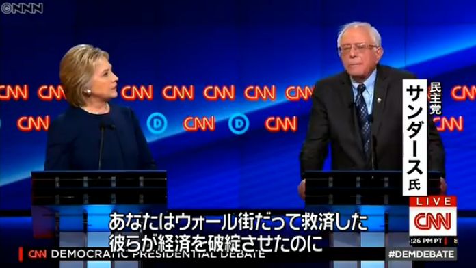 サンダース氏はすかさず、クリントン氏が金融機関や大企業を優遇しているとして、クリントン氏を改めて批判した。