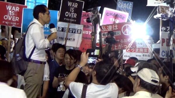 9月11日金曜日。国会で戦争法をめぐっての攻防が大詰めを迎えているこの日の夜、2つの抗議行動が行われた。官邸前では、東電が汚染水たれ流しをひた隠しにしている問題を共産党の池内さおり議員が訴えていた。