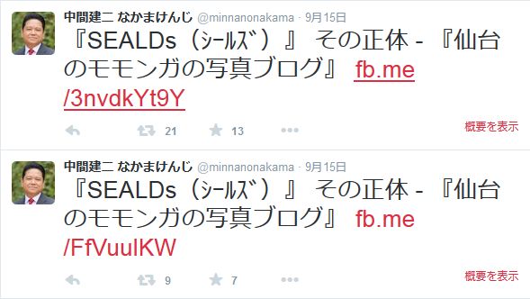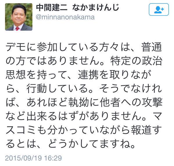 — 中間建二 なかまけんじ (@minnanonakama) 2015, 9月 15