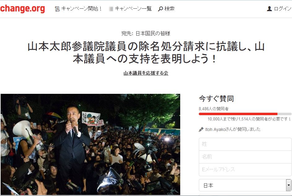 キャンペーン「日本国民の皆様: 山本太郎参議院議員の除名処分請求に抗議し、山本議員への支持を表明しよう!」 に賛同をお願いします! https://t.co/5eDKsYemzM @change_jpさんから