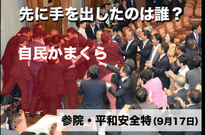 だが、すでに明らかなように、特別委員会の混乱の原因と責任は与党自民党の側にある。鴻池祥肇委員長を最初に自民議員のスクラムで囲って不当採決を行おうとしたのは自民党だ。それを突破しようとした民主党の小西洋之議員の顔を、ヒゲの隊長こと佐藤正久自民党筆頭理事がパンチした映像も出回っている。