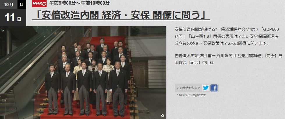 NHK 日曜討論、自民党の閣僚だけが出演。