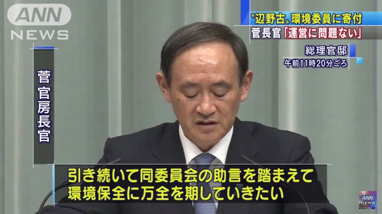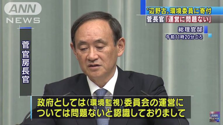 金を払って環境監視委を黙らせたという事か、菅官房長官は問題ないと言ってるそうだが…問題ありありやろ!
