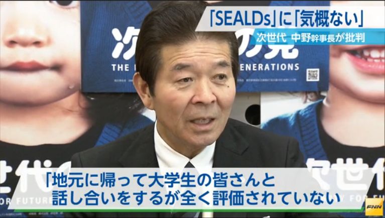 → 次世代・中野幹事長「シールズは若者に評価されていない」とバッサリ