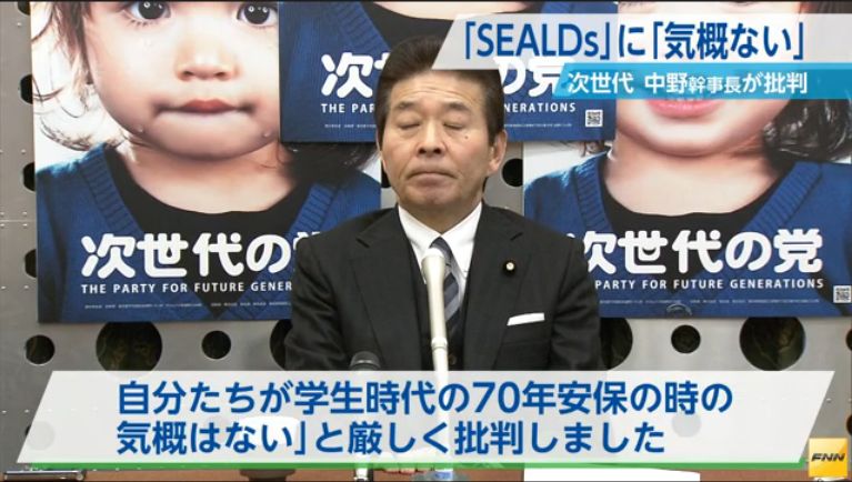 「『SEALDsには気概がない』 次世代・中野幹事長」。あれ? そうおっしゃる次世代さんには、どんな気概がありましたっけ? https://t.co/3GLwpChdOm