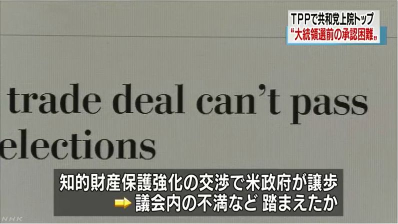 【漂流か?】TPP米議会の審議は来年11月の大統領選後に。トランプ「現政権の無能さは理解不能。TPPはひどい内容」ヒラリー「中間層の給料を上げる協定ではない」と酷評