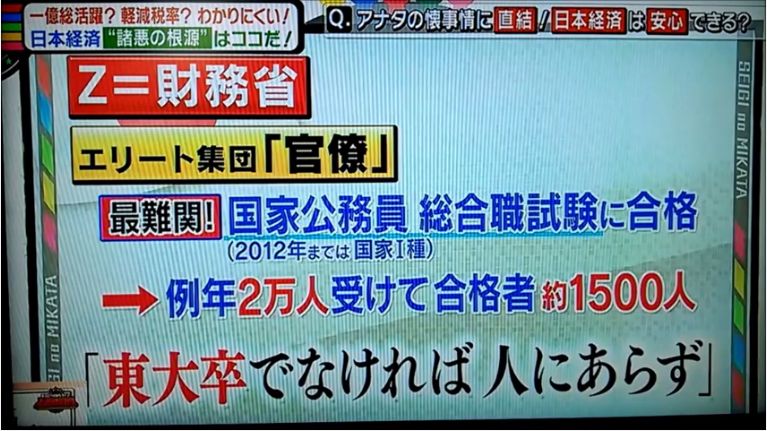 先週26日(土曜日)、大阪朝日放送の番組「正義のミカタ」に出た。大阪のニュース情報番組だが、東京とは違って、自由な面白さがある。そこで、「日本経済の諸悪の根源はZ」というコーナーをやった。Zとは財務省である。
