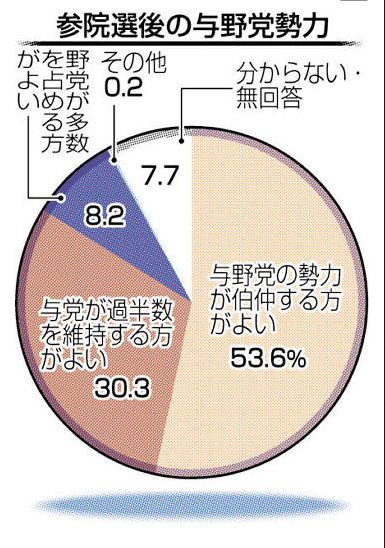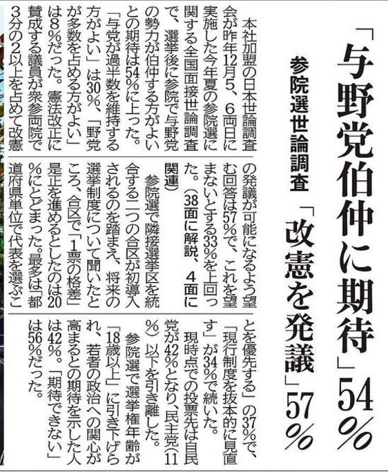 参院選全国世論調査 54%与野党伯仲期待 合区推進派は2割 https://t.co/lfExHaxTvu #どうしんウェブ/電子版