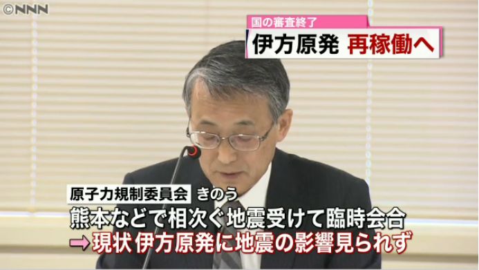 普通だったら、熊本地震が起こって原発の在り方について、”もう一度”立ち止まって見直す時(ラストチャンス)なのに、老朽化した高浜原発1・2号機に続いて、震源地のすぐ近くにある伊方原発にもゴーサインが出ました。