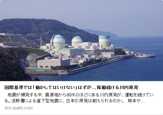 国際基準では「動かしてはいけない」はずが…稼働続ける川内原発 https://t.co/CtTe9Ve3yo @dot_asahi_pubさんから