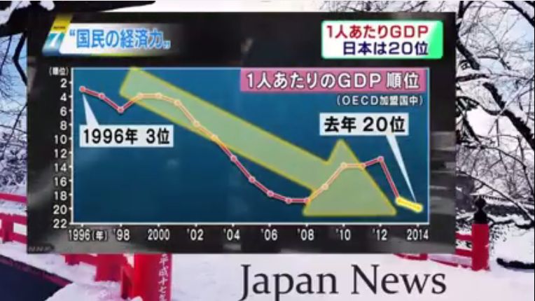 【ショック】日本は1人当たりGDPがいつの間にかOECD34ヵ国中で20位まで後退していた。
