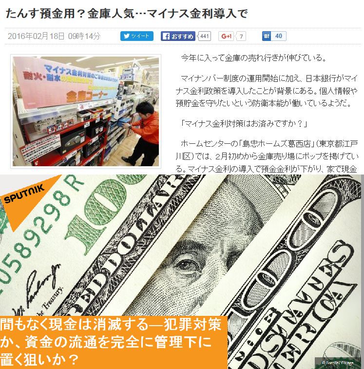 【先例】日本ではマイナス金利導入でタンス預金用の金庫が人気、一方、欧州では紙幣自体をなくしてしまおうという不穏な動き