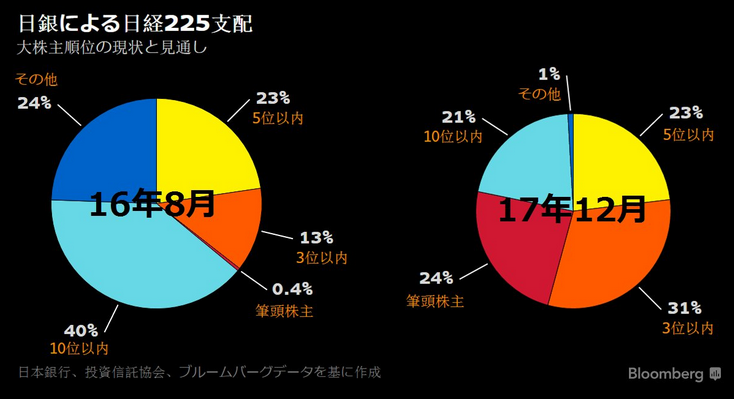 大株主「日銀」、17年末に日経平均4分の1で筆頭−ETF増功罪 https://t.co/0oCtp3Hd0g @bloombergjapanから