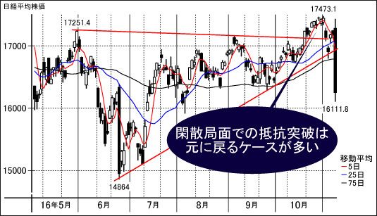 米国の大統領選挙前に民主党候補のヒラリー・クリントン氏のメール問題が取りざたされたことで、日経平均株価は11月に入ってから急落しました。このあたりから、「いまさら蒸し返すなんて怪しい」と思い始めていました。
