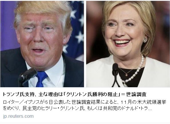 トランプ氏支持、主な理由は「クリントン氏勝利の阻止」=世論調査 https://t.co/rn8rKS2YSv @Reuters_co_jpより