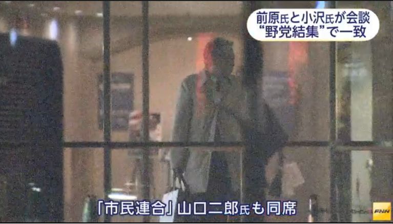 関係者によると、前原・小沢両氏の会談には、参議院選挙に向けて、野党統一候補を支援する「市民連合」の山口二郎氏も同席した。