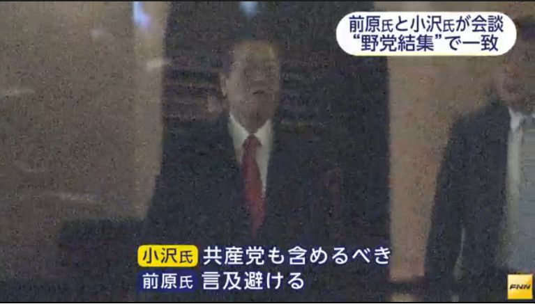 小沢氏は、共産党も含めるべきだと主張したが、前原氏は言及を避けた