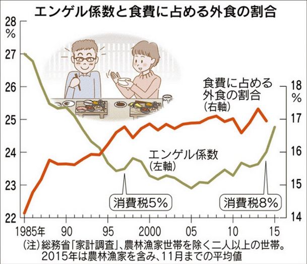 エンゲル係数が上昇中!消費税8%アップが原因か?間違いないのは庶民の生活は苦しくなっていること。