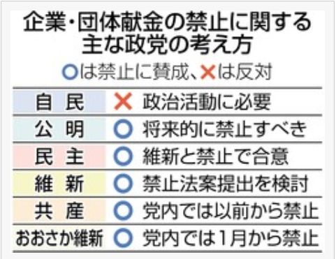 RT“@tomcat2013: 企業献金について民・共など「禁止」自民は反対https://t.co/zK5dkbzAYE