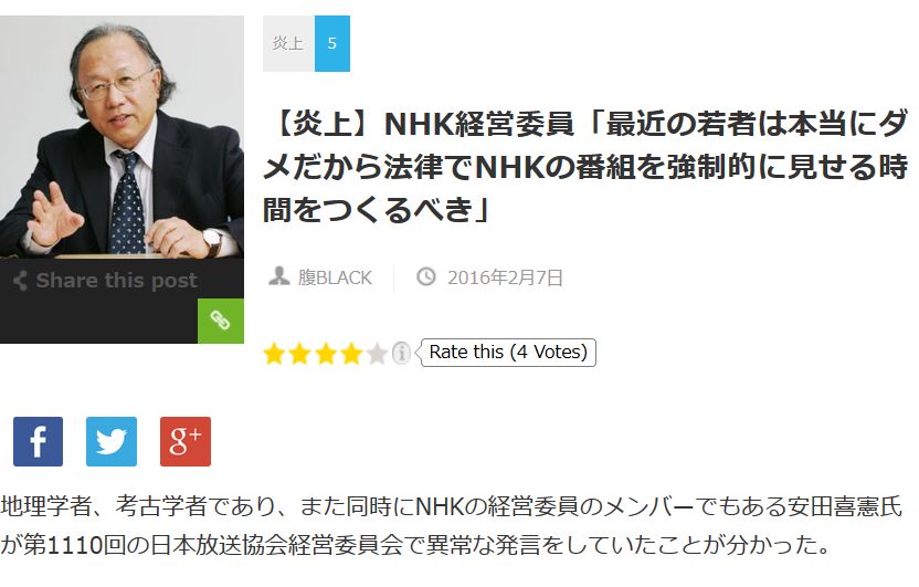 【炎上】NHK経営委員「最近の若者は本当にダメだから法律でNHKの番組を強制的に見せる時間をつくるべき」 | netgeek https://t.co/RltJc0OLXS