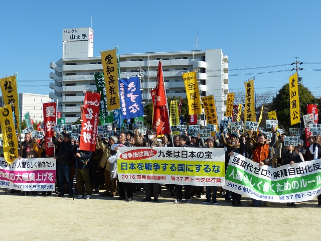 全労連の小田川義和議長は「安倍政権の戦争法、社会保障改悪、法人税引き下げなどの悪政のバックに、トヨタなど大企業がある。今国会で残業代ゼロ法など労働法制改悪をしようとしている。全力で阻止しよう」と訴えました