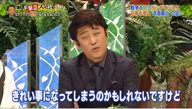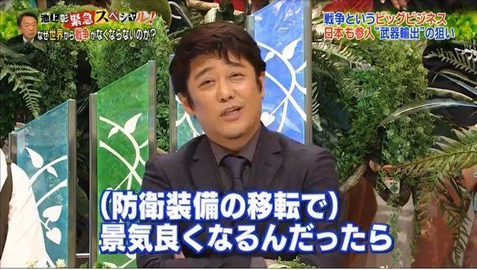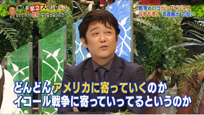 番組では池上彰氏が、「戦争というビッグビジネス 日本も参入“武器輸出”の狙い」と題し、戦争ビジネスと日本の関わりについて解説していた。