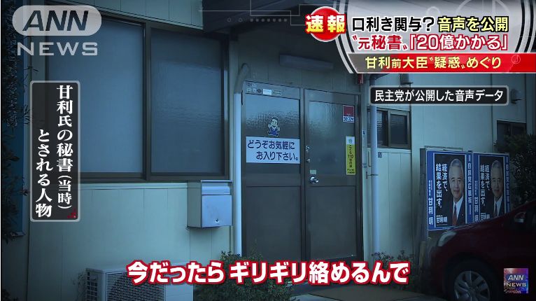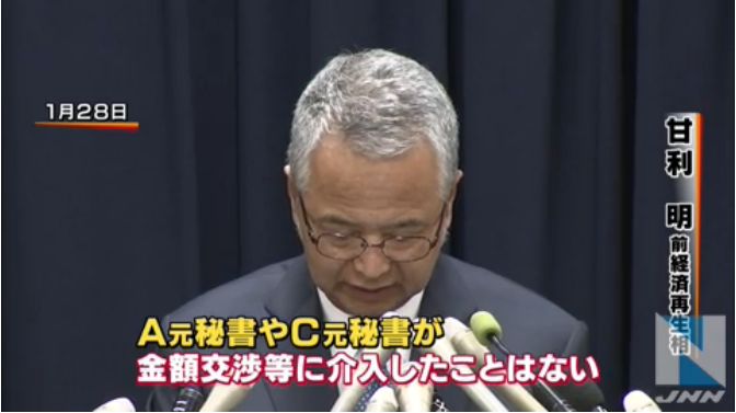 【辞任党】甘利氏の元秘書、口利き確定か?録音音声「今だったらギリギリ絡める(口利きできる)」甘利氏は辞任会見で元秘書の口利きを否定