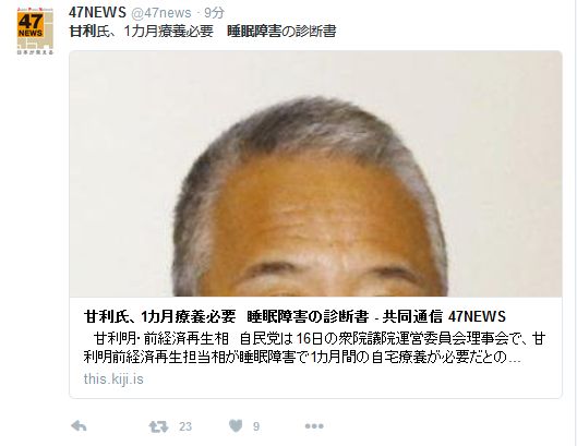 甘利氏 睡眠障害で1カ月休養 | 2016年2月16日(火) - Yahoo!ニュース https://t.co/RFXsh7RezV #Yahooニュース