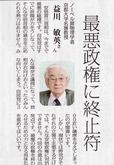【賛同】「安倍首相は今までで最悪の総理です」ノーベル賞物理学者 益川敏英さん