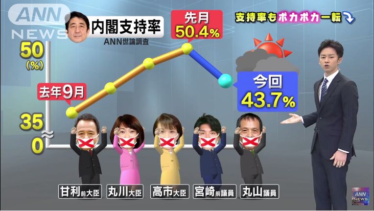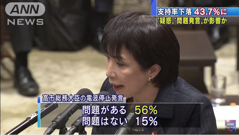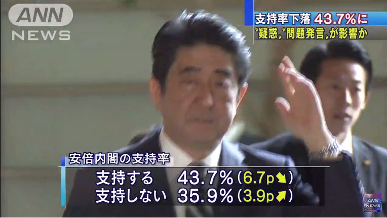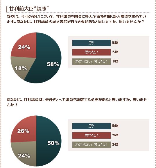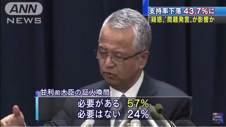 【ANN2月世論調査】安倍内閣の支持率6.7ポイント急落!甘利前大臣:国会に証人喚問必要がある57%:議員辞職すべきだ50%