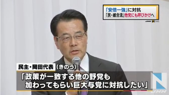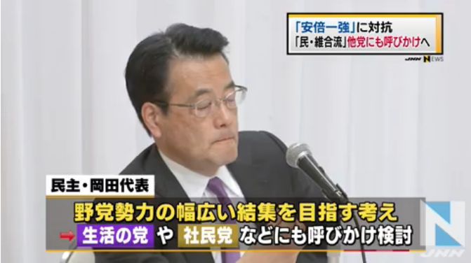 【野党共闘】民主・維新合流!社民・生活・元気・無所属などにも参加呼びかけへ