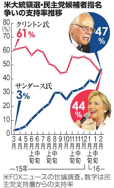 泡沫候補だったサンダース氏が大本命のヒラリー氏と肩を並べるまでになったのはネットの力が大きいという見解が大半を占めます。米のマスメディアも御用メディアになっているので、大企業やウォール街の代弁者であるヒラリーの方を持ちますからね。