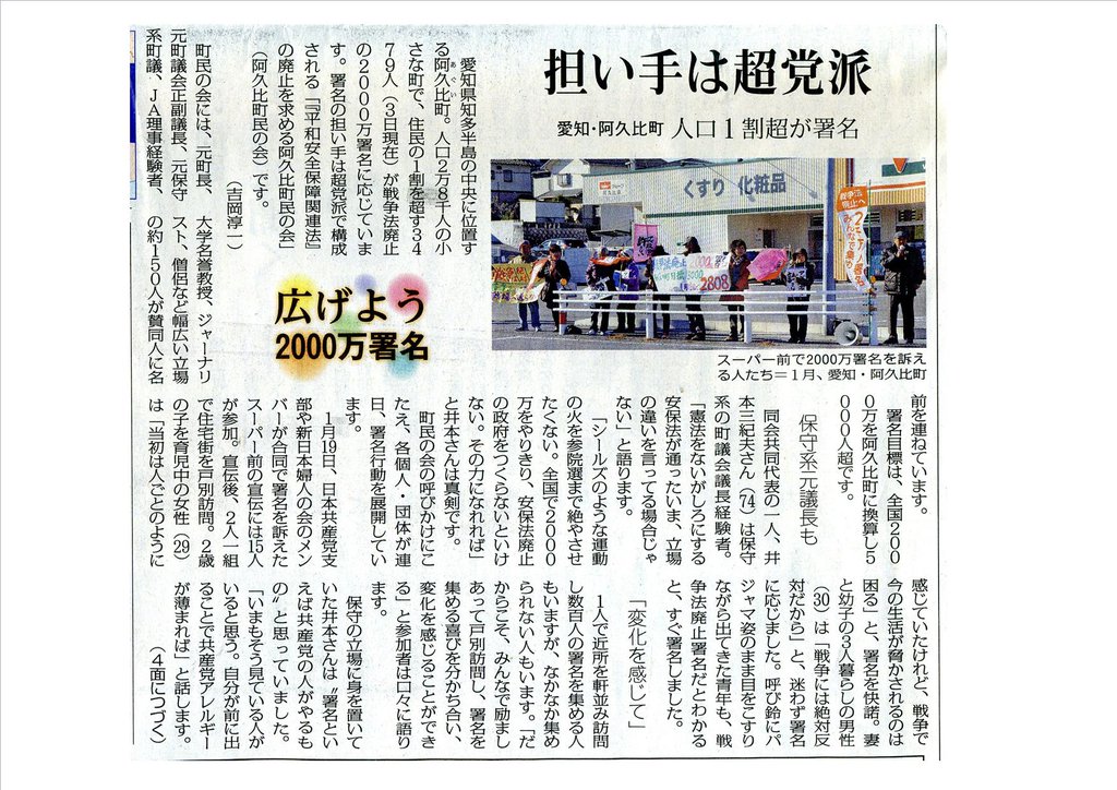 【すげぇ】戦争法廃止の2000万人署名、人口2万8000人の愛知県阿久比(あぐい)町で5000人を突破!