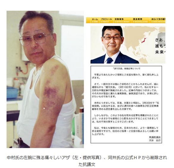 【またまた自民】河井克行首相補佐官に暴行を受けた元秘書の写真が痛々しい!地元広島では創価学会員、元同級生などが落選運動!