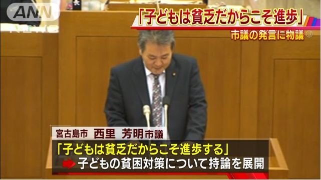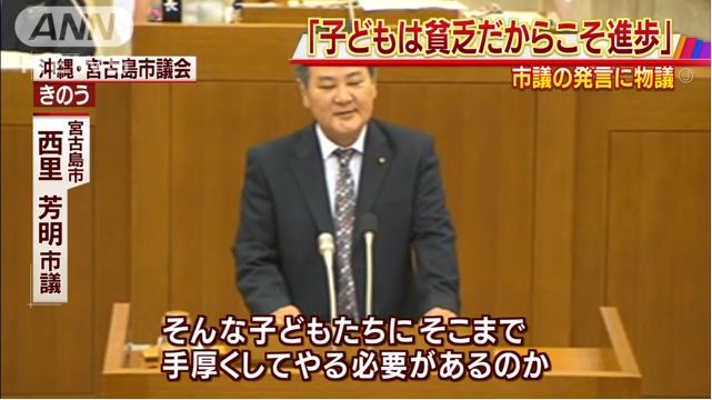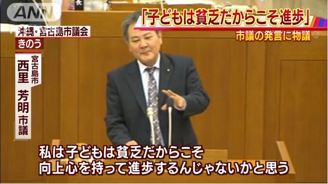 【またトンデモ】宮古島市・西里芳明市議「子どもは貧乏だからこそ、向上心を持って進歩する」