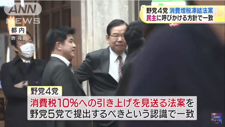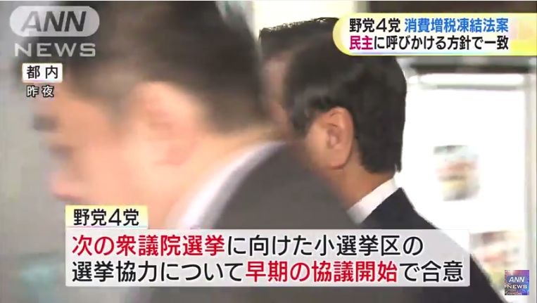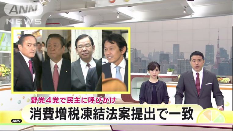 野党4党「消費増税凍結法案」民主に呼び掛ける方針(テレビ朝日系(ANN)) - Yahoo!ニュース https://t.co/vDzcJm3ng7 #Yahooニュース