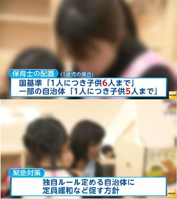 待機児童解消へ 保育士1人が担当する子どもの数で緩和促す方針https://t.co/jMzRSSgXgu