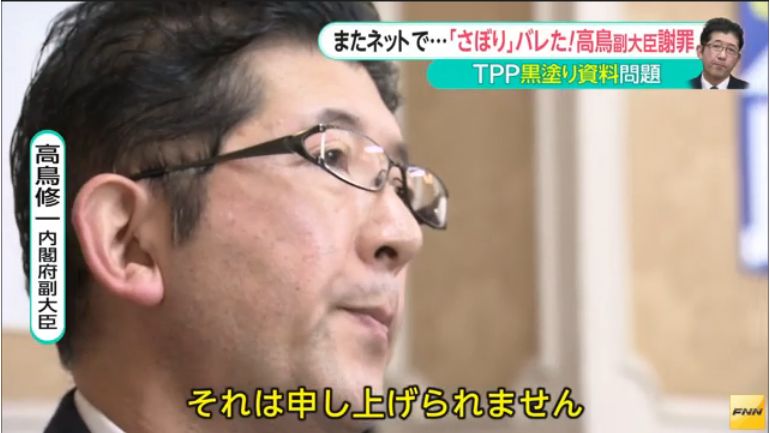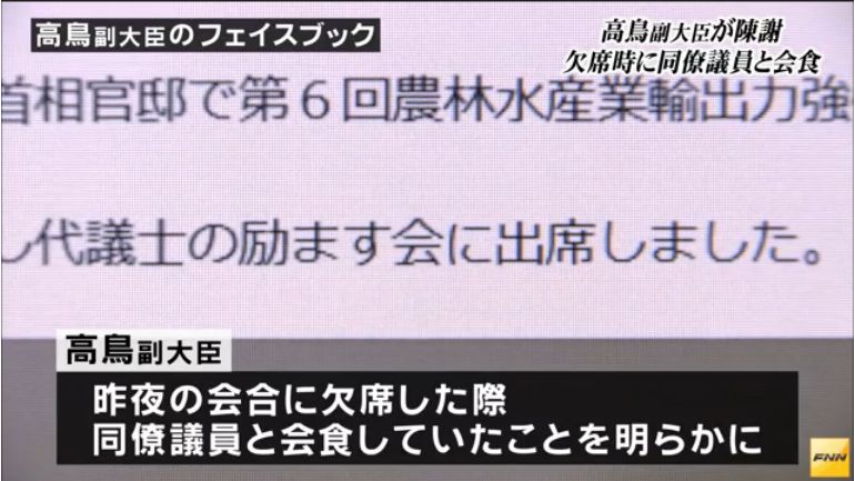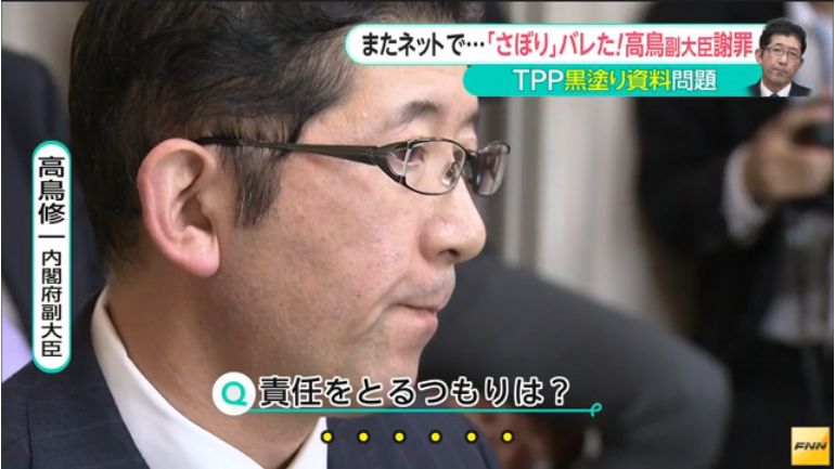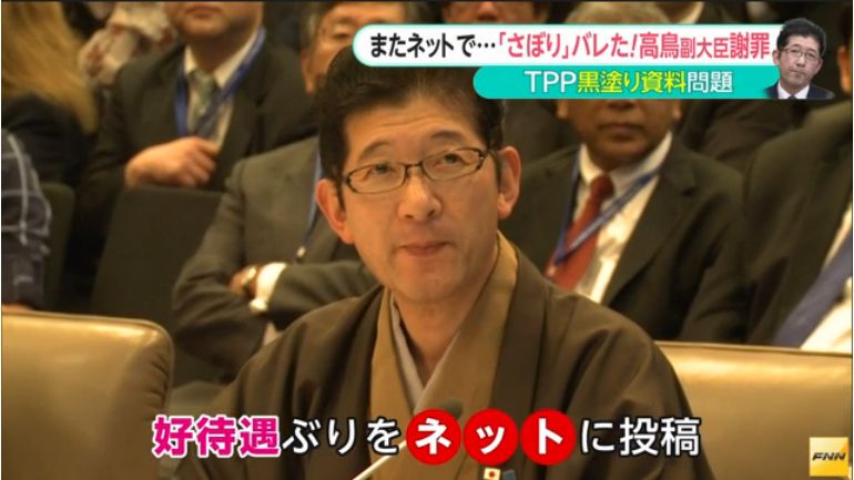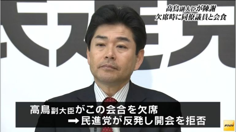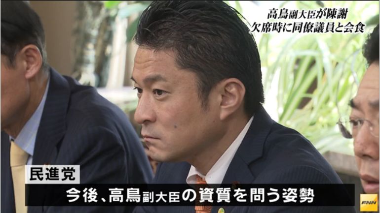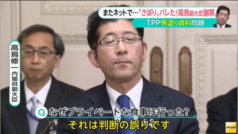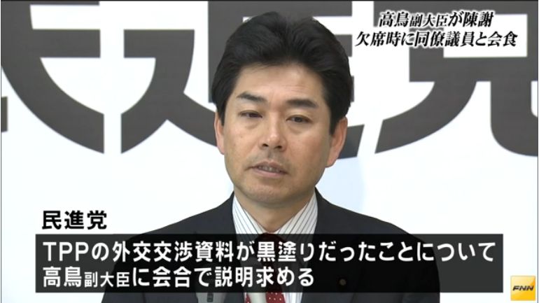 【責任を取れ】TPP担当の高鳥副大臣、公務をすっぽかしプライベートな食事に行っていたことが判明!民進議員に平謝り!