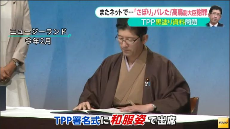 高鳥副大臣といえば、辞職した甘利前大臣の代わりに、署名式に和服姿で出席。