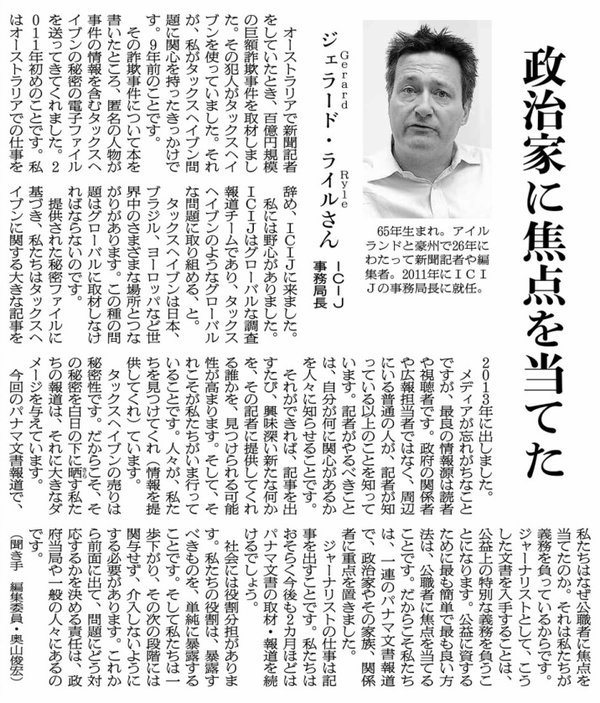 しかし、パナマ文書の威力が発揮されるのはこれからですよね。ネットでも個人や志のあるジャーナリスト(普通か)の方々が、さっそくパナマ文書を調べているようです。今後の展開に要注目です!