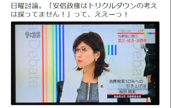 日曜討論。「安倍政権はトリクルダウンの考えは採ってません!」って、ええーっ! pic.twitter.com/uksHr1mNJv