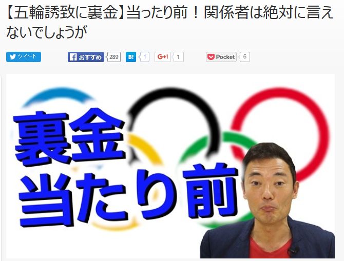 【汚リンピック】元東京五輪招致メンバーが”裏金は常識”と発言!「この手の話は世界の招致活動においてはっきり言って常識」