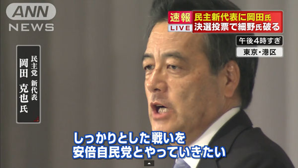 【朗報!】民進・岡田代表が衆院選の野党統一候補に言及!「勝てる可能性がある選挙区は、一本化の努力をすべきだ」