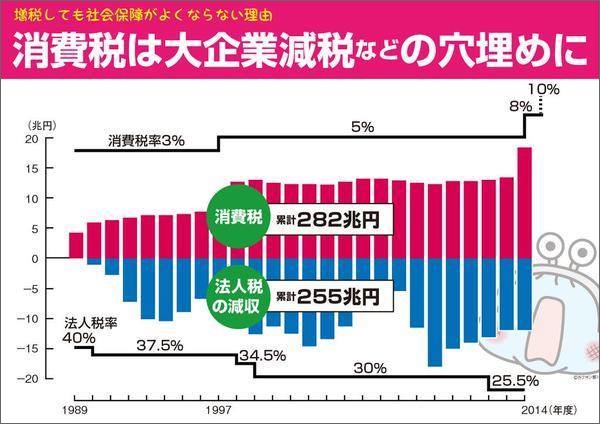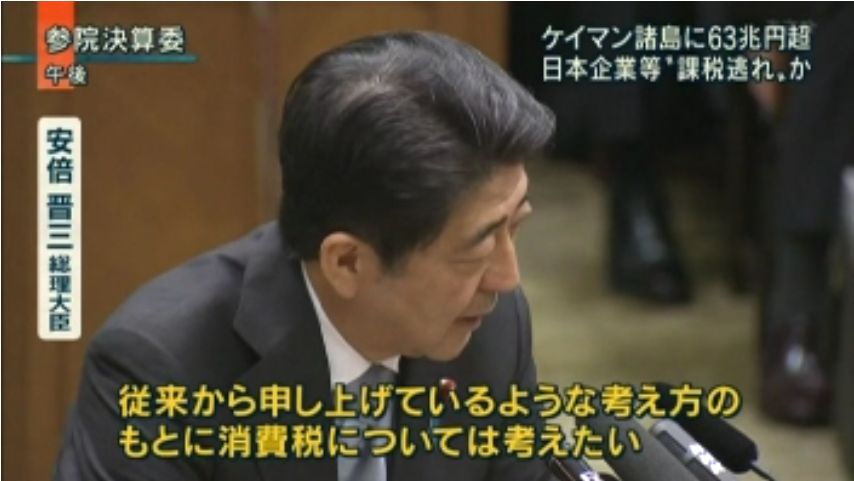 消費税うんぬんというのはケイマンの金の動きをまともにしてからの話ですよね。まあ、消費税なんて上げれば上げるほど景気が悪くなるんだから、今すぐ廃止すべきですけどね。しかも、社会保障に全額使われないし、消費税上げ始めてから、見事に法人税が下がっているという恐ろしい話もありますしね。
