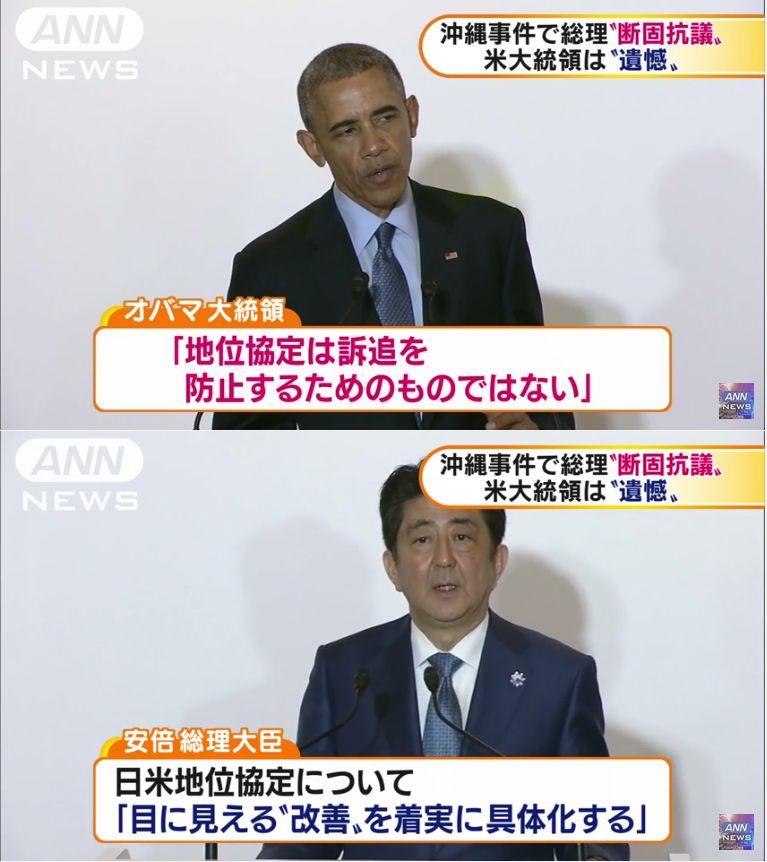 沖縄事件で総理“断固抗議” 大統領は遺憾の意(16/05/26)